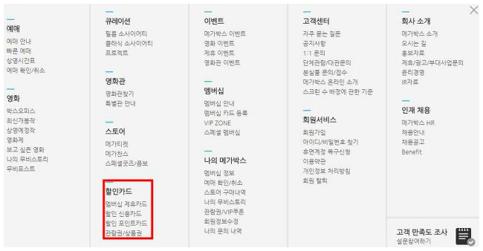이제 메가박스 할인카드를 모두 정리하는 방법에 대해서 알려드릴게요. 메가박스 홈페이지에 접속해서 전체 메뉴를 클릭해주세요.